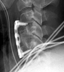 post-operative lateral radiograph demonstrating cortical fixation screws traversing the C3-4