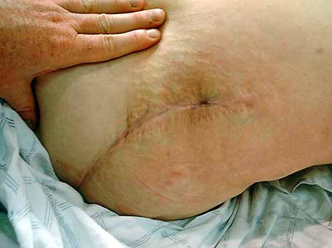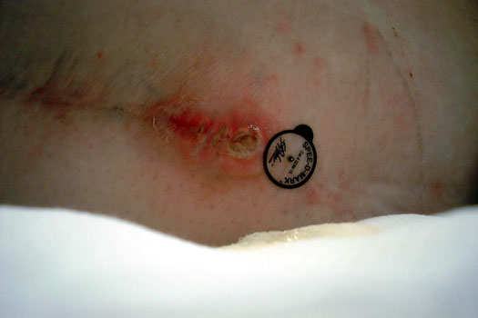 - Surgical scar examined for areas of leakage or dehiscence