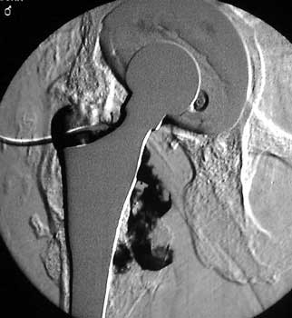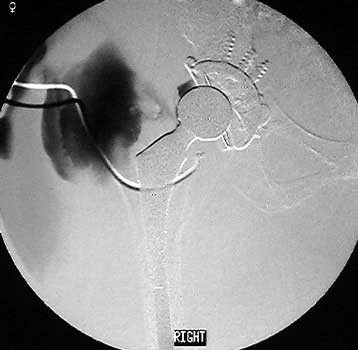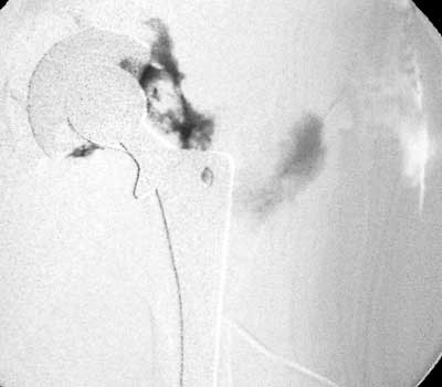 Arthrographic evidence of cup looseningcontrast enters